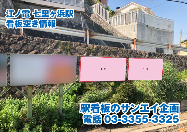江ノ電 七里ヶ浜駅 駅看板 No16・17 乗車ホーム サインボード