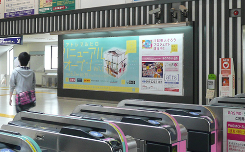 大型シート・ボード広告は、主に駅構内の壁やホーム上のスペースに掲出する大型の広告です。駅広告の中でもサイズが大きいため、駅利用者の目に留まりやすく、遠くからも目立つので大きなインパクトを与えられます。コンコースや自由通路などに掲出することもあり、乗降客だけでなく不特定多数の駅利用者に訴求できます。