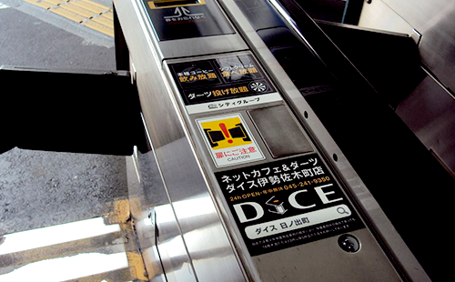 自動改札ステッカーは、駅の自動改札機に掲出する広告です。主に、自動改札機の正面やICカードタッチ面の先に広告を掲出します。駅広告の中ではサイズが小さい広告ですが、乗降客が改札を通過するときに目に留まりやすいので、通勤通学者への反復効果・刷り込み効果が期待できます。
